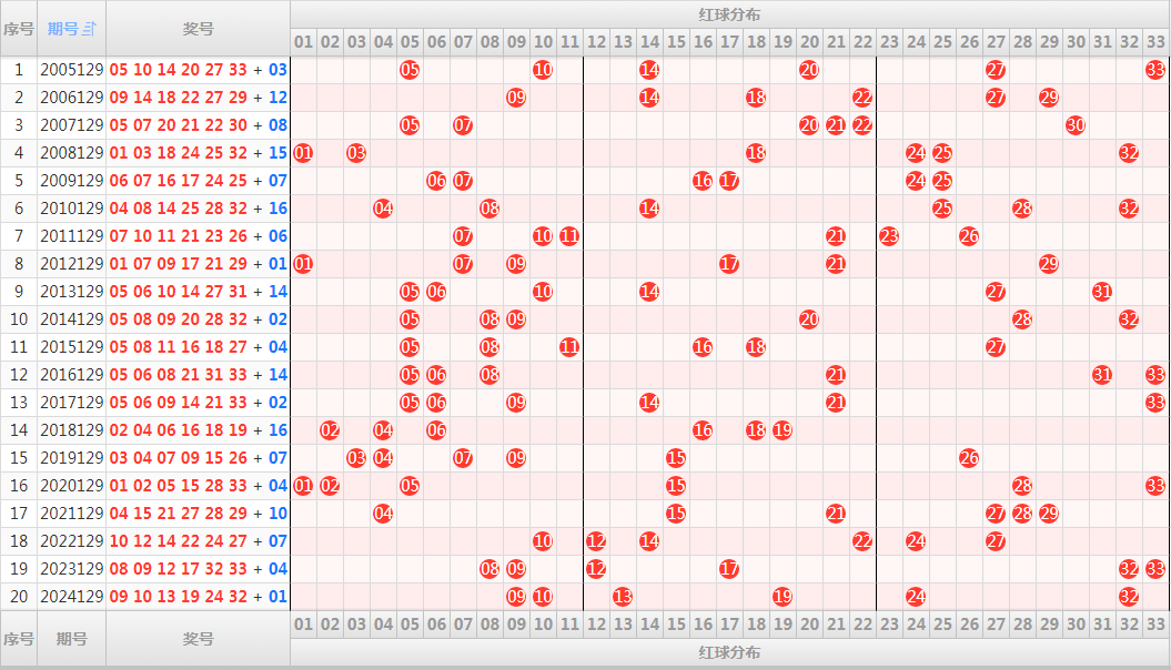 六、历史同期,红球开奖号码和走势图(历史数据演示):