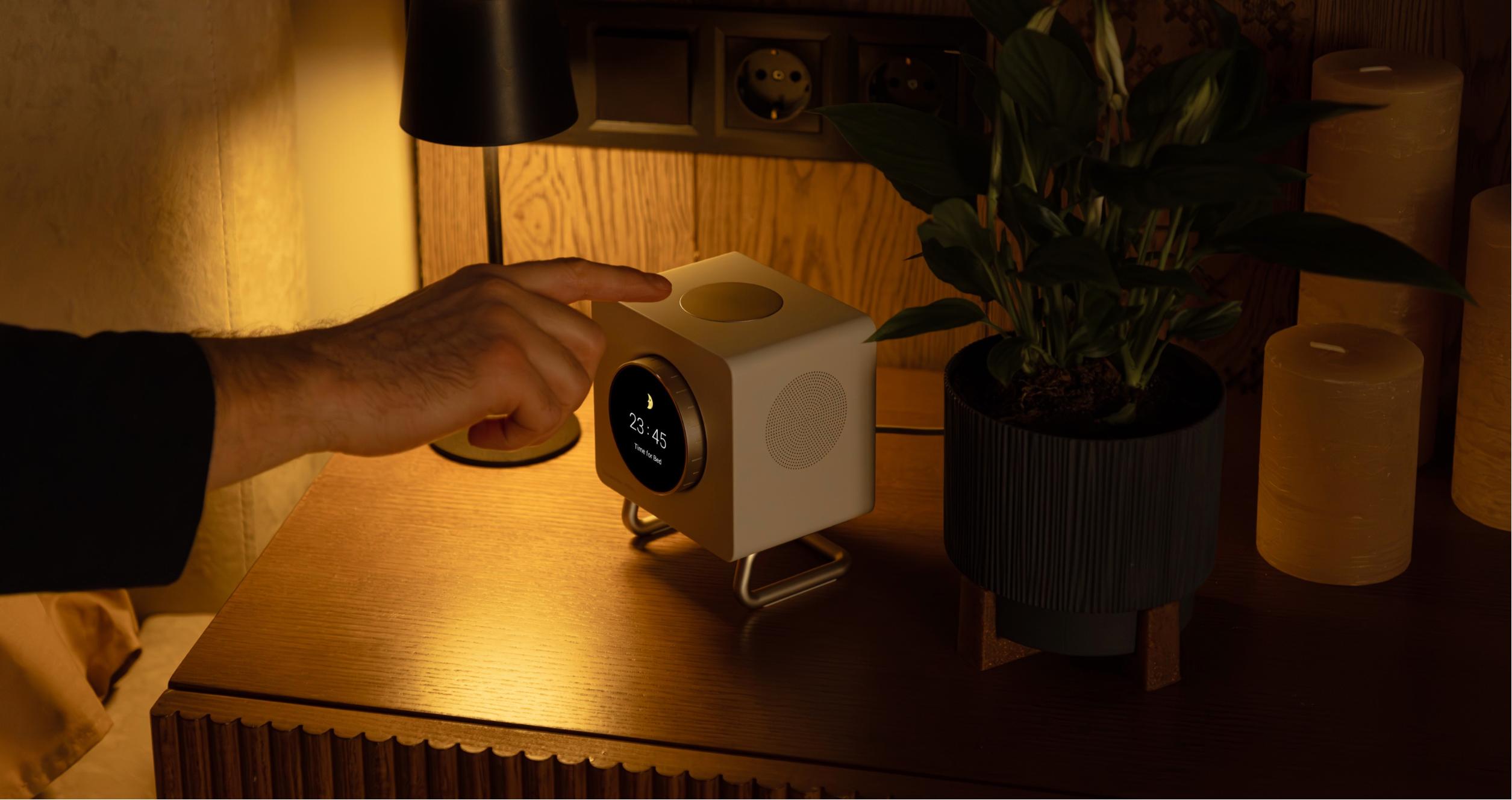 这一产品可以放置在用户的床头柜上,利用非接触式毫米波雷达采集夜间监测信号,并以此为基础构建出更符合人体自然规律的唤醒流程,能在恰当的时刻唤醒用户。