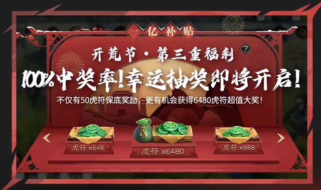 要是觉得自己人品值低,脸黑,手气还差的话,那你还可以参加第二个福利抽奖活动。这个抽奖绝对不会让任何一个玩家失望的,因为100%中奖,最不济也能抽个50个保底的虎符奖。
