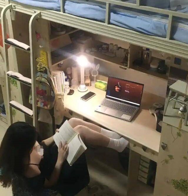 夜深了,又一盏补光灯在某个宿舍亮起,