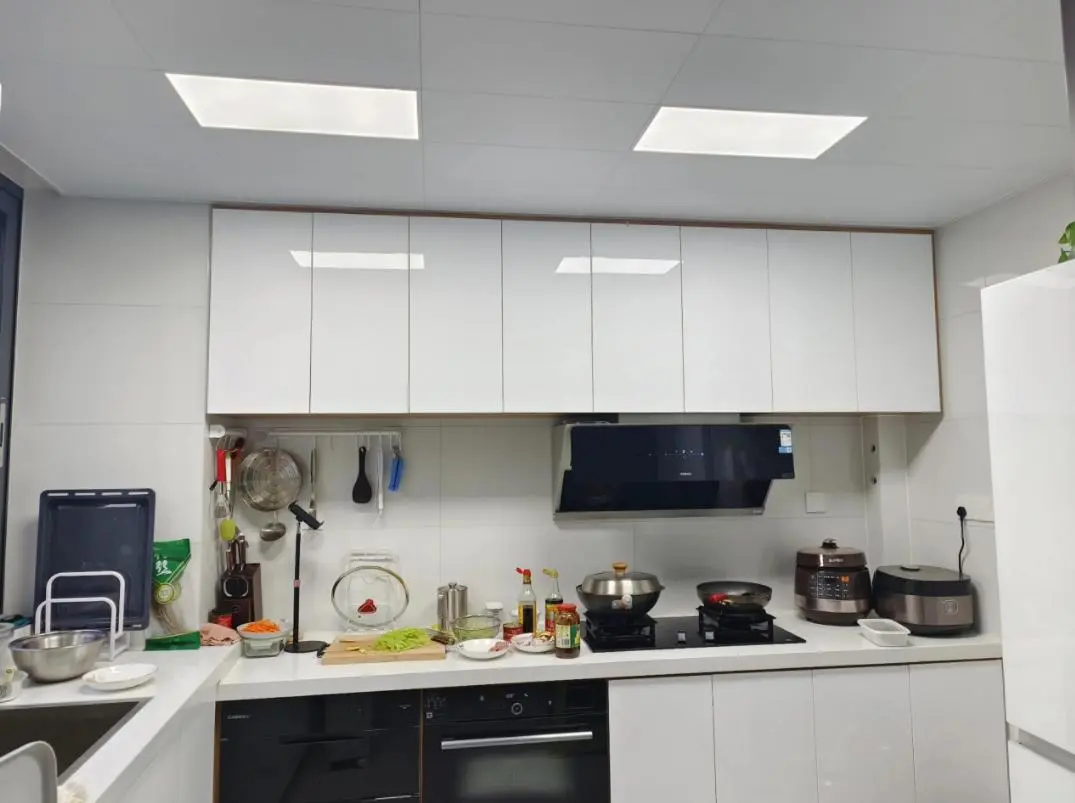 厨房灯光,我早有规划,集成吊顶时特意加装LED平板灯。