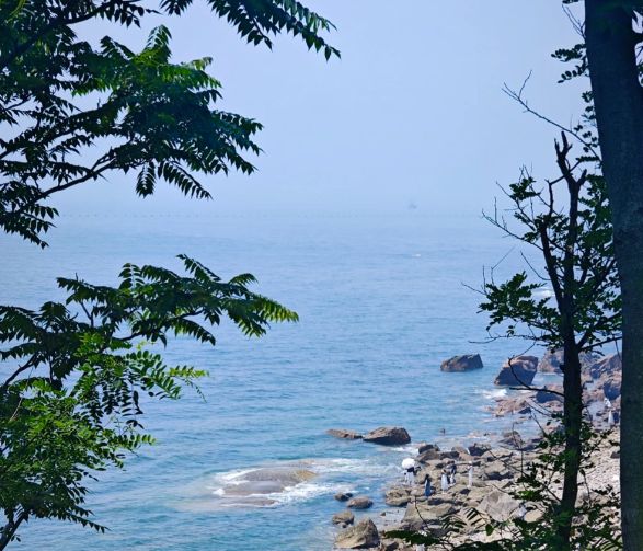 经长期海蚀作用,岸边礁石林立,形态各异。一条落差明显的海滨木栈道,依循峭壁与海岸的起伏而建,形成了一侧是山崖、一侧是开阔海面的独特观景视野。行走其上,可以近距离观察潮水拍打礁石的景象。秋季大潮时,海浪尤为汹涌,拍岸之声不绝,浪花飞溅如雪,这便是历史上著名的“燕岛秋潮”。此外,燕儿岛东南侧与青岛奥林匹克帆船中心隔湾相望,现代化的帆船场馆与自然的岬角风光共同构成了山海城交融的视觉画面。