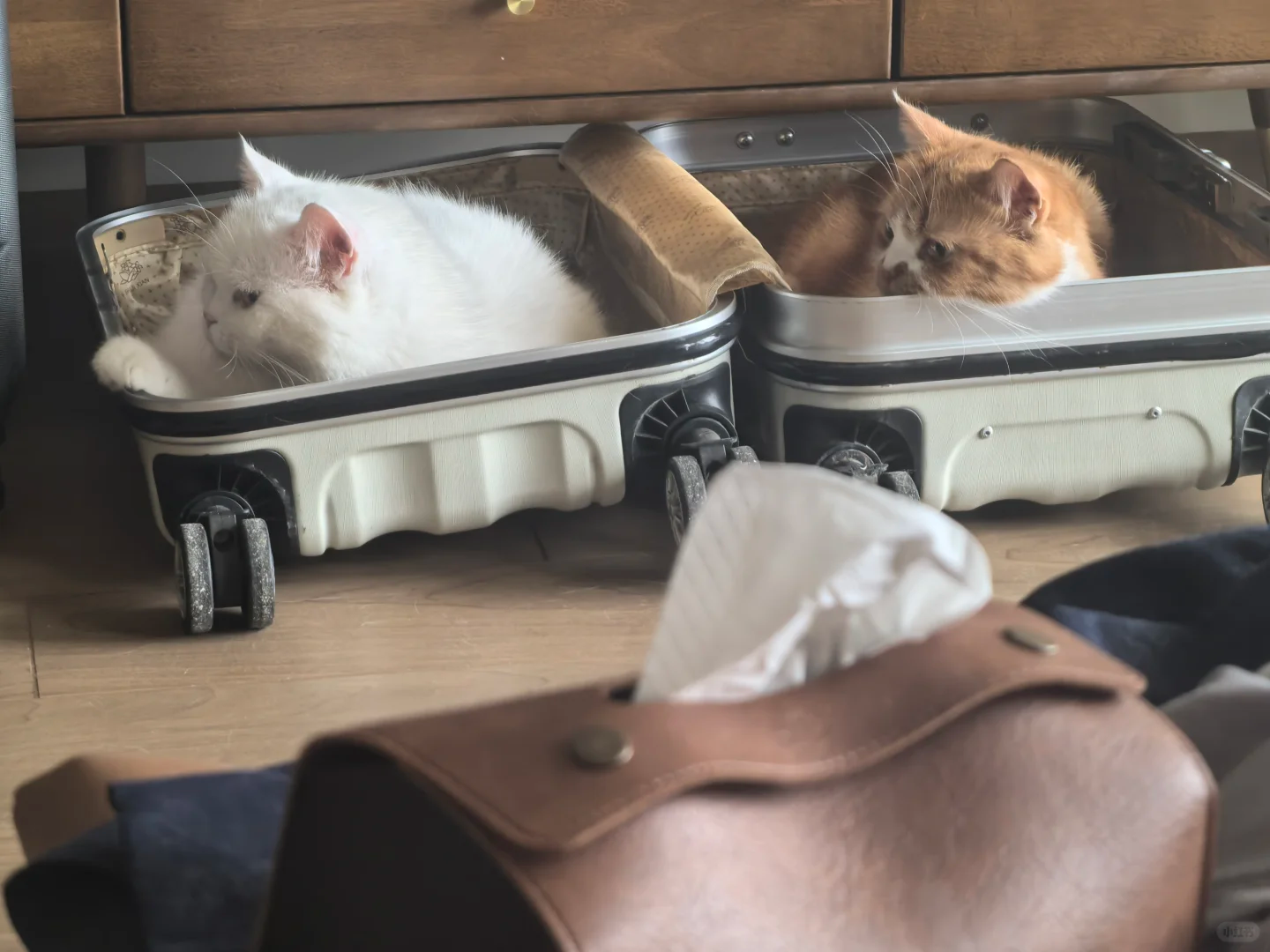 闲置不用的行李箱,可以直接拿来当做猫窝,把行李箱打开之后,直接用两个毛茸茸的垫子或者毯子铺在里面就可以当做猫窝。