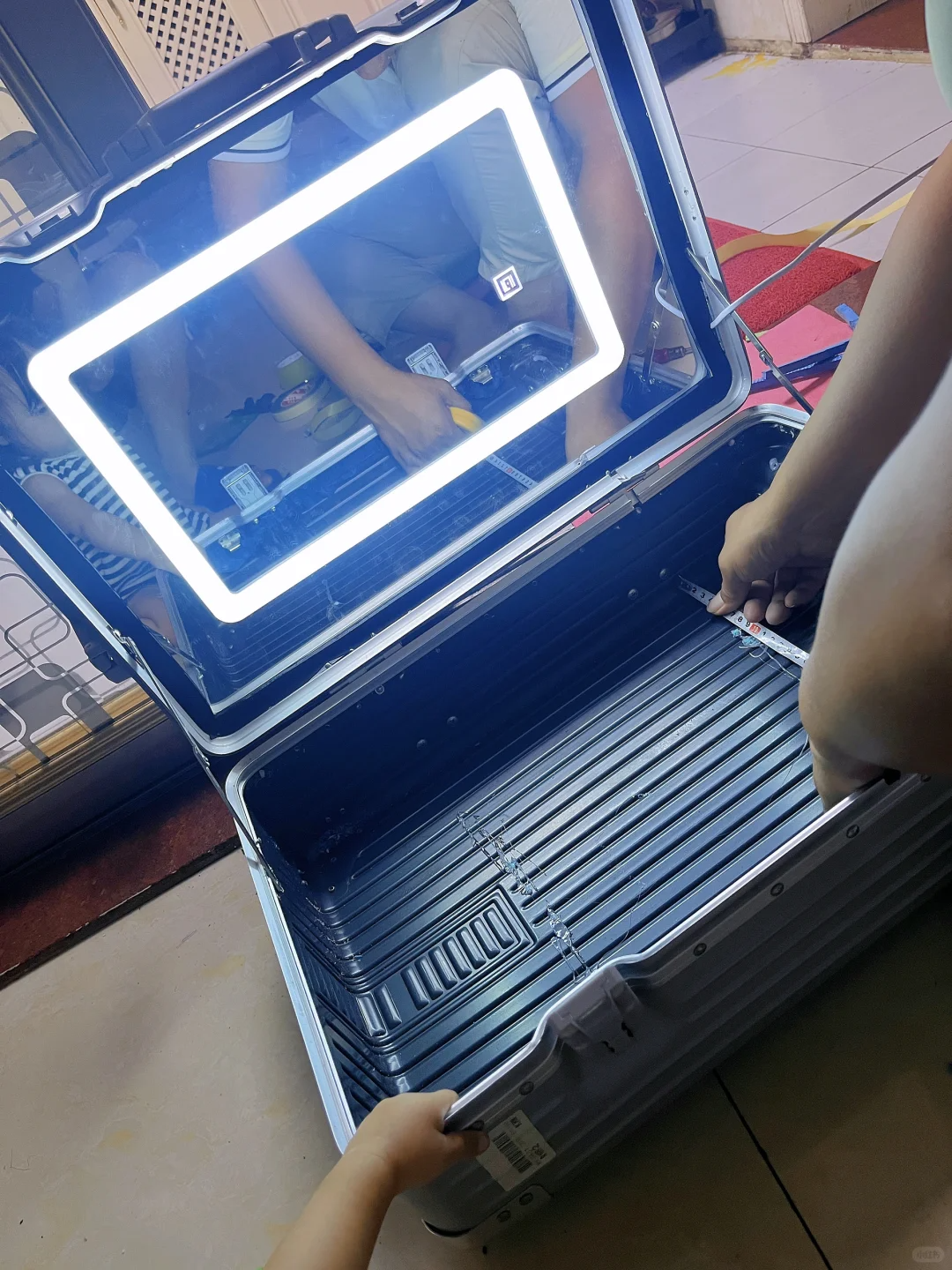 不仅容量大,而且行李箱里面还能安装上镜子,一切工具应有尽有,关键是要比网上买的化妆箱轻多了,还带着万向轮,可以随时推走。