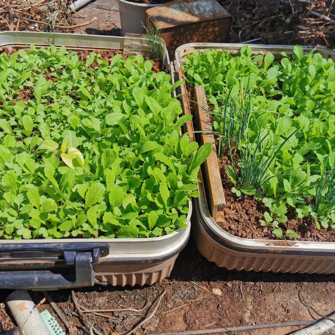 如果家里有阳台露台,也可以利用破旧的行李箱,在露台上面种菜,小白菜和小葱,这都是比较耐活好种的蔬菜,在南方天气自给自足没有问题。