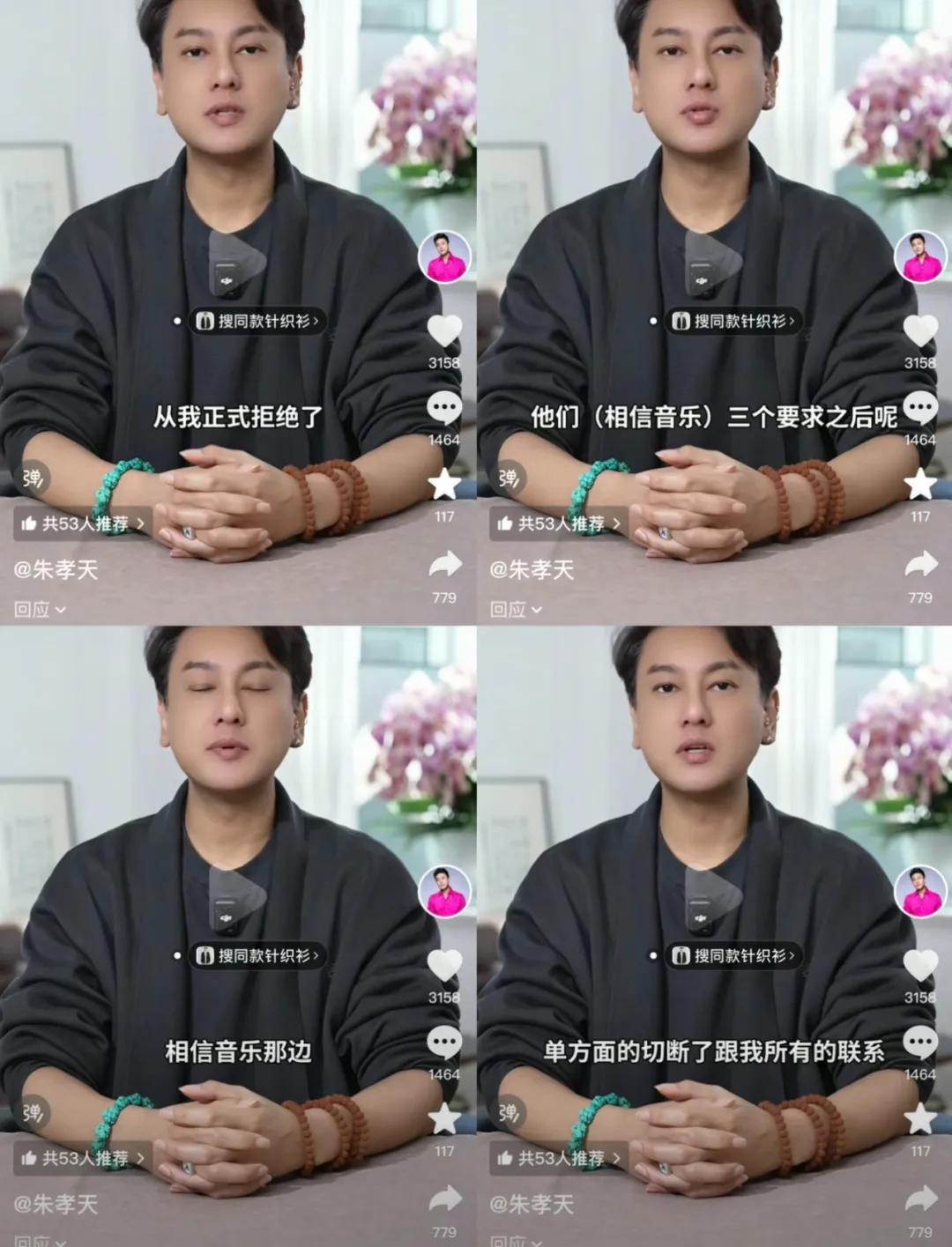 他透露,在几个月前拒绝了对方的三个要求后,“相信音乐”便单方面切断了与他的所有联系。随后,网络上才出现了因他“泄密”导致活动延期、乃至最终被移出团队的说法。朱孝天称,自己和大家一样,也是通过这些报道才得知被排除在此次活动之外,因此他将不会参与本次演出,对此他表示遗憾。