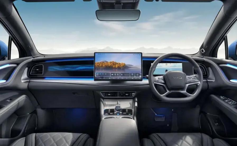 Sealion 7延续了比亚迪的海洋美学设计理念,外观展现了跨界运动风格。车内配备了15.6英寸旋转触摸屏,支持Apple CarPlay和Android Auto。其他配置方面,包括50W手机无线充电、PM2.5过滤的自动双区空调、方向盘加热和360度全景影像等,进一步提升了使用便利性和舒适性。
