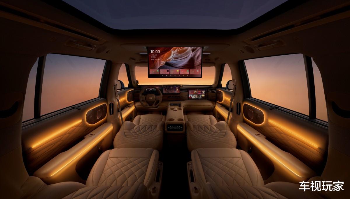 座舱内部的豪华配置与舒适体验,体现了智己LS9对用户需求的深度洞察。该车首次与B&O合作,搭载由25个扬声器组成的7.1.4声道音响系统,营造沉浸式听觉体验。座椅部分采用全球首创的4D机械按摩结构,按摩强度是传统气动按摩座椅的7倍,可提供接近专业理疗级别的按摩效果。此外,行业首创的瞬净新风系统每小时可完成100次座舱空气交换,保持车内空气清新;21.5英寸4K分辨率的二排娱乐屏、12.3L容量的双开门冰箱,以及全车三排零重力座椅,进一步强化了座舱的豪华感与实用性。