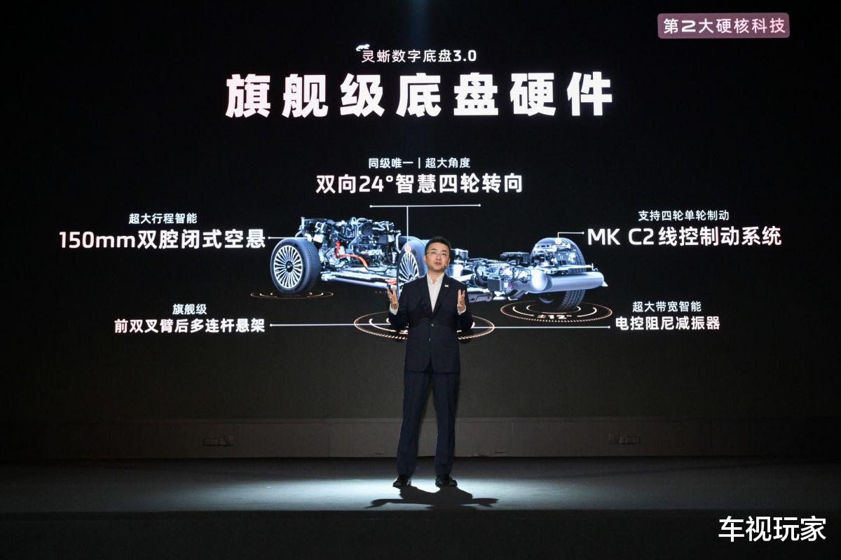 针对全尺寸SUV普遍存在的操控不便问题,智己LS9搭载了专属开发的灵蜥数字底盘3.0系统。其中,双向24°智慧四轮转向功能为同级车型中独有,配合精准的转向调校,让车长接近5.3米的车辆拥有仅4.95米的转弯半径,操控灵活性与小型车相当,有效改善了城市道路通勤、停车时的便利性。底盘部分还配备1500mm行程的双腔闭式空气悬架,能够以毫秒级的速度调整悬架刚度,再结合行业首创的“舒享防晕模式”,可显著减少车辆行驶中的侧倾与颠簸感,提升乘坐舒适性。