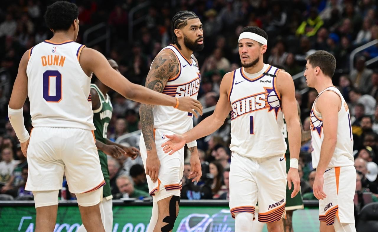 “布克和唐斯在肯塔基州成为队友已经 11 年了,尽管太阳队现在应该对重聚感兴趣。”太阳队可能是假设字母哥到纽约交易的第三支球队,唐斯前往菲尼克斯,杰伦·格林、邓恩、马鲁阿赫和/或马威等年轻天才和选秀权将前往雄鹿队。”一支拥有布克、唐斯、狄龙、格雷森阿伦、奥尼尔的球队至少在西部具有竞争力。”斯沃茨的交易提案有几个动人的地方,但将唐斯与布克配对的想法当然有其优点。这里有一个可以促进这种交易的潜在贸易方案。