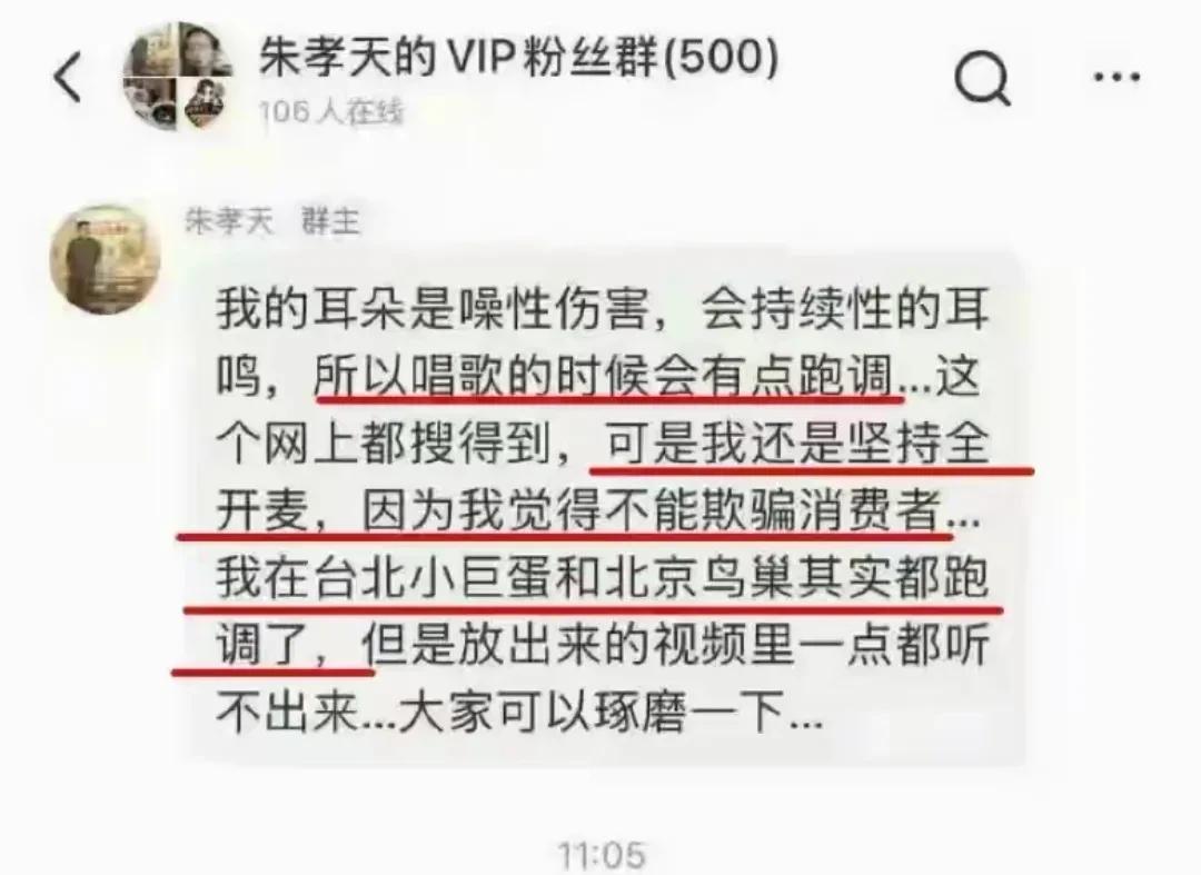先说重点:朱孝天在粉丝群放话"坚持全开麦不欺骗消费者",这话说得挺正经,但后面话锋一转,暗示五月天阿信有假唱操作。您品,您细品——他提到自己参加台北小巨蛋和北京鸟巢演出时"唱歌会跑调,但视频里完美无瑕",这波阴阳怪气的操作,堪称娱乐圈"文字游戏"天花板!