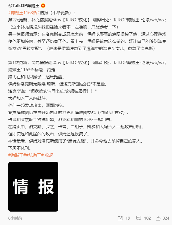 我们知道本周即将更新海贼王最新一期的漫画1163话,目前漫画情报也已经更新,本话标题位“约定”,这个应该是指之前的戴维琼斯游戏,算是所有海贼的约定!