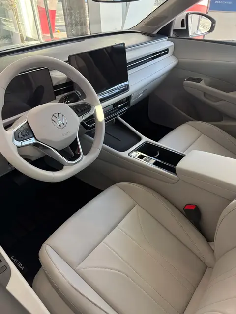 拉开车门,朗逸Pro内饰的变革堪称颠覆。以往大众燃油车上那种略显保守的中控布局被彻底重新构思。引人注目的变化源自ID.纯电家族的电子怀挡设计。这个看似简单的移位的设计,却巧妙地解放了传统挡把所占用的中控台下部空间。如今,这里可以从容地布置双杯架和一个支持快充功能的手机无线充电面板(据称半小时可充电至60%),让驾驶者的随身物品如手机、钱包、钥匙等都有了更合理、更触手可及的安放之处,极大地提升了日常使用的便利性。