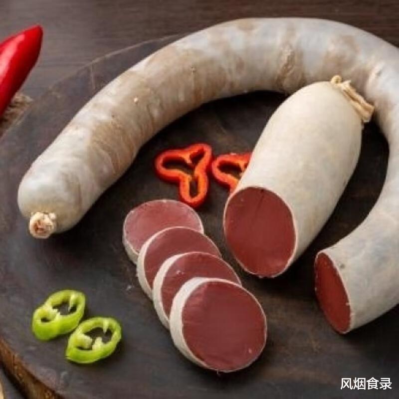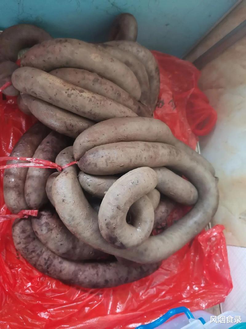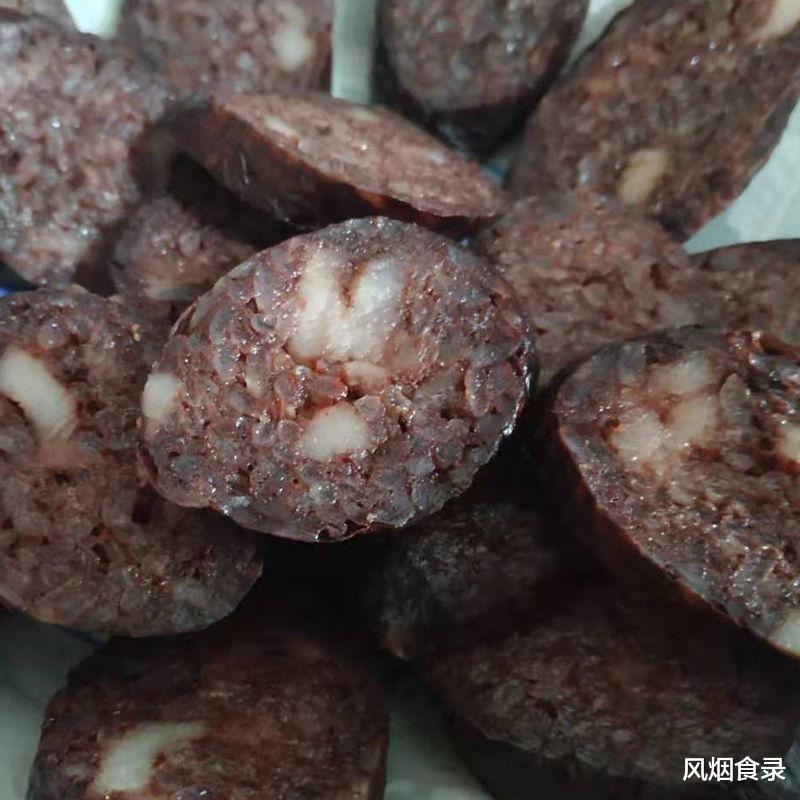 做法简单:猪血与面粉按3:7比例混合,灌入洗净的猪肠,文火煮1.5小时,期间扎孔排气。