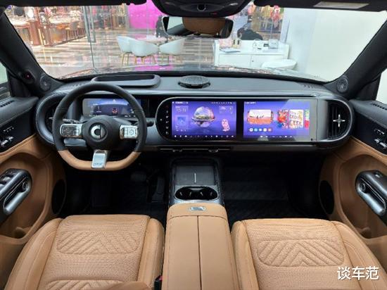 坐进车内,能明显感受到 smart 在营造“新奢”氛围上的努力。中控台采用大面积软质材料包覆,据官方数据软包比例达85%,搭配Nappa真皮座椅和精细的缝线,触感和视觉都属上乘。
