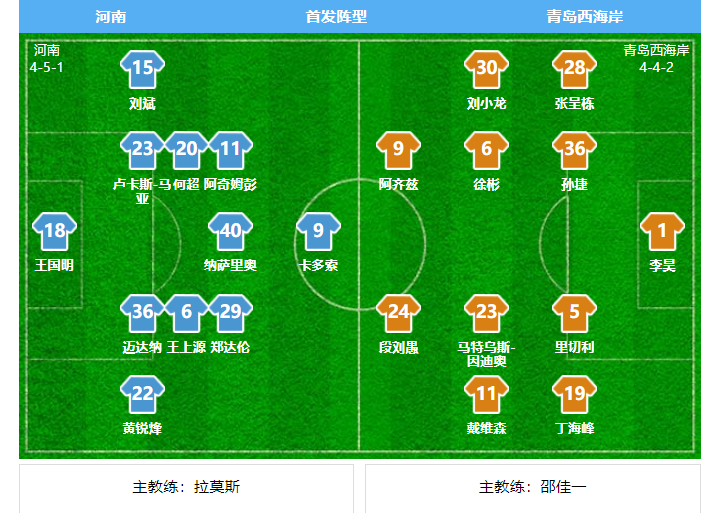 无球防守端,青岛西海岸本赛季主要使用4-4-2阵型,并实施高位逼抢