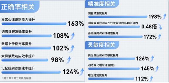 町石血压计采用了目前行业内最先进的无距传感测压技术,将双通道SOC硬核芯片、高精度双滤波稳定算法、自研三重校准算法、双循环检测传感器、增压过程与筒壁无距衔接。这是一种医用级准确测量技术,相较其他血压计测速更快,测量更准确,结果更准确,数据更稳定。对比报告显示灵敏度提升126%,相较其他町石准确度提升198%,稳定率提升102%,是测评过的产品里面整体表现最好的,效果足以媲美院线专业测压仪。
