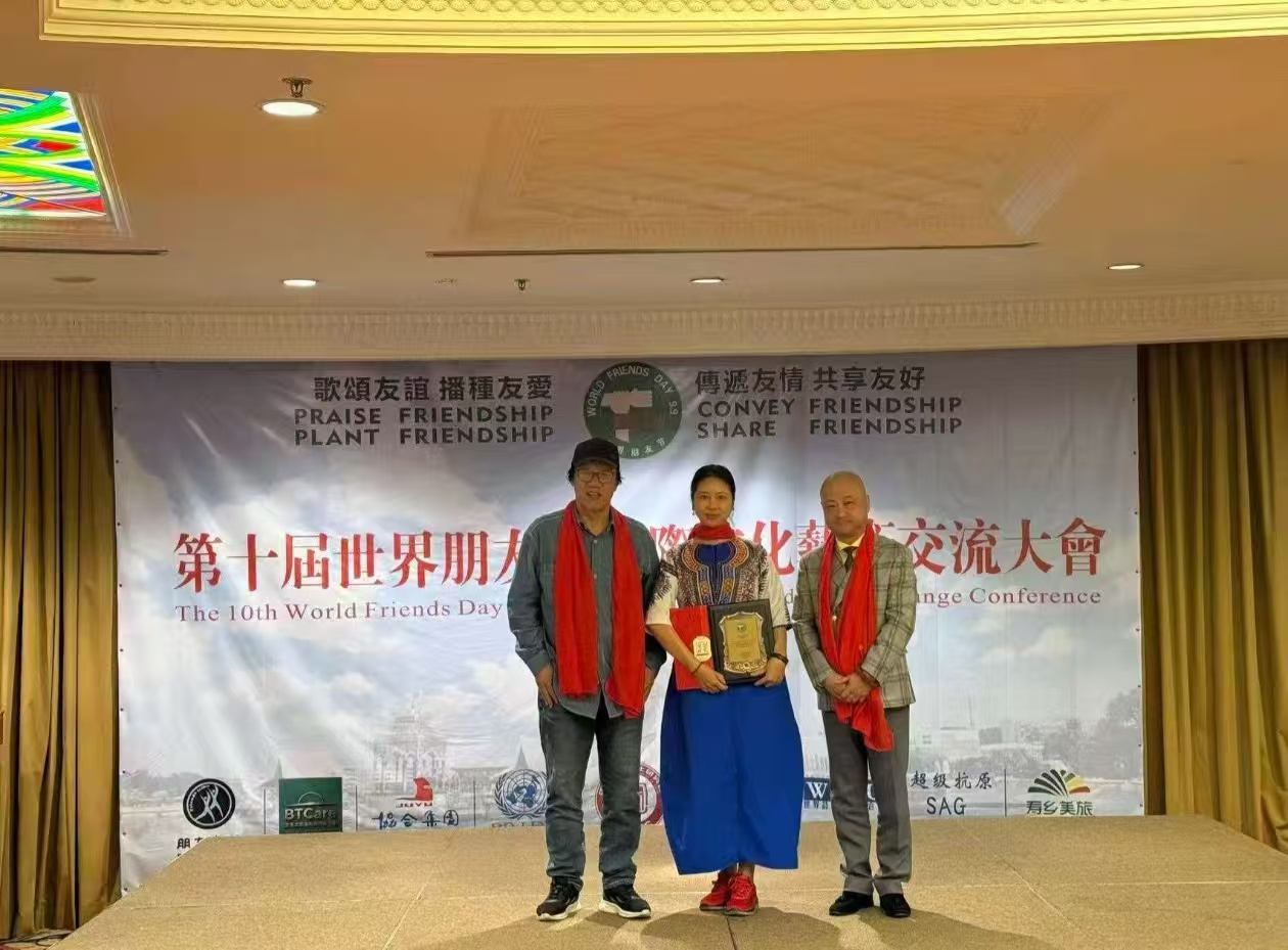 联合国NGO太平洋地区发展与教育组织区菁秘书长的致辞如时代暖流,成为整场盛会的情感坐标。她以温润而坚定的语调,串联起个人相知的纯粹、国家相交的笃信、行业相融的热忱、亲情相连的温暖,用层层递进的排比铺陈出友爱的万千气象:“友谊是跨越国界的桥梁,让隔岸的遥望化作相拥的温暖;友谊是消融隔阂的春风,让陌生的距离酿成相知的甘甜;友谊是凝聚力量的纽带,让独行的脚步汇成共进的洪流;友谊是照亮前路的星光,让平凡的相遇绽放不凡的光芒。” 字字句句饱含深情,既是对“友爱相连,文艺共传”主题的深刻诠释,更是对“天下大同、命运与共”美好愿景的深情呼唤。