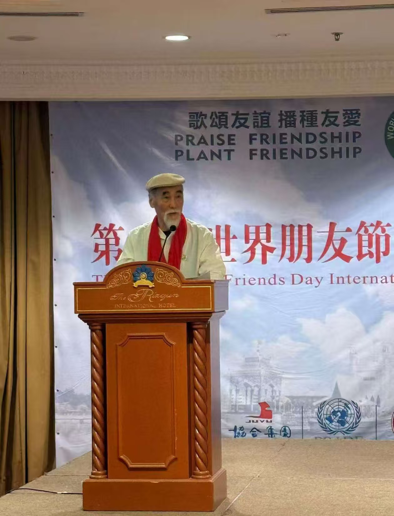 联合国NGO太平洋地区发展与教育组织赵元洪总干事长率先登台,围绕“国际友谊与文化共融”主题发表震撼致辞。他身着正装站在雕花讲台前,语调沉稳而有力,将世界朋友节的价值娓娓道来:“在全球化的浪潮里,我们曾因差异产生隔阂,但今天,我们因文化相聚、因友谊共鸣——世界朋友节不是一场简单的聚会,而是跨越国界的‘心灵桥梁’,是凝聚和平发展共识的‘精神纽带’。”