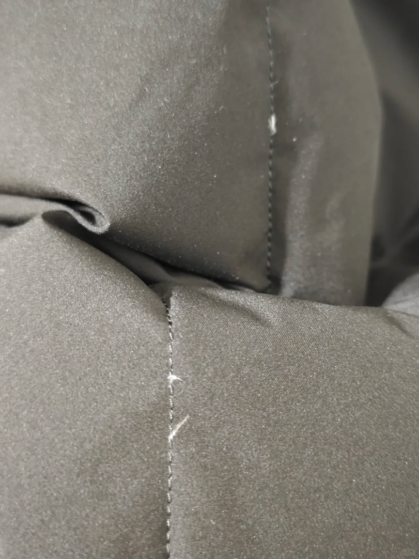 建议大家尽量选择针脚比较细腻,双排针和双层锁线的羽绒服,这样质感会更好一些,而且不会出现跑绒的问题。
