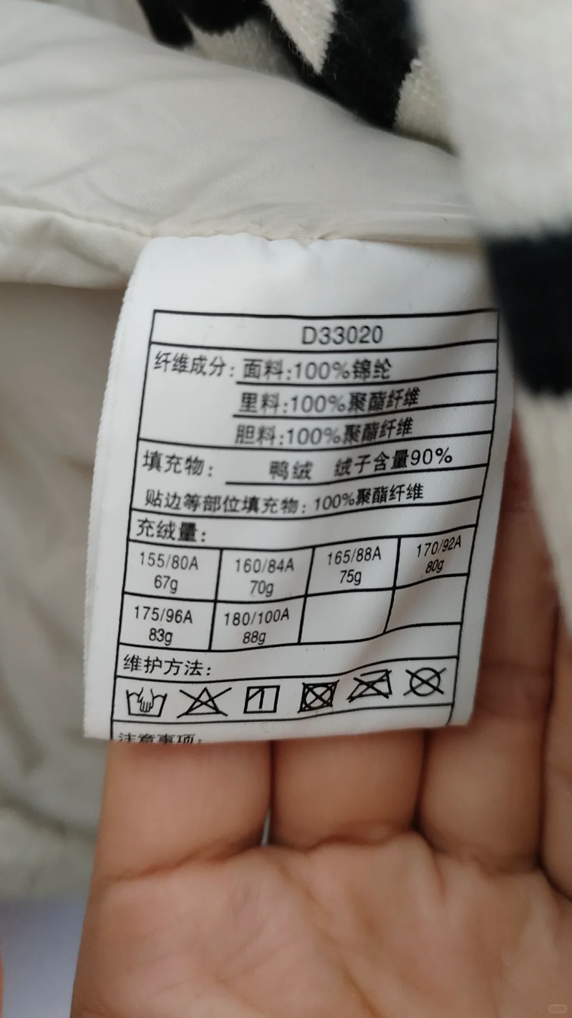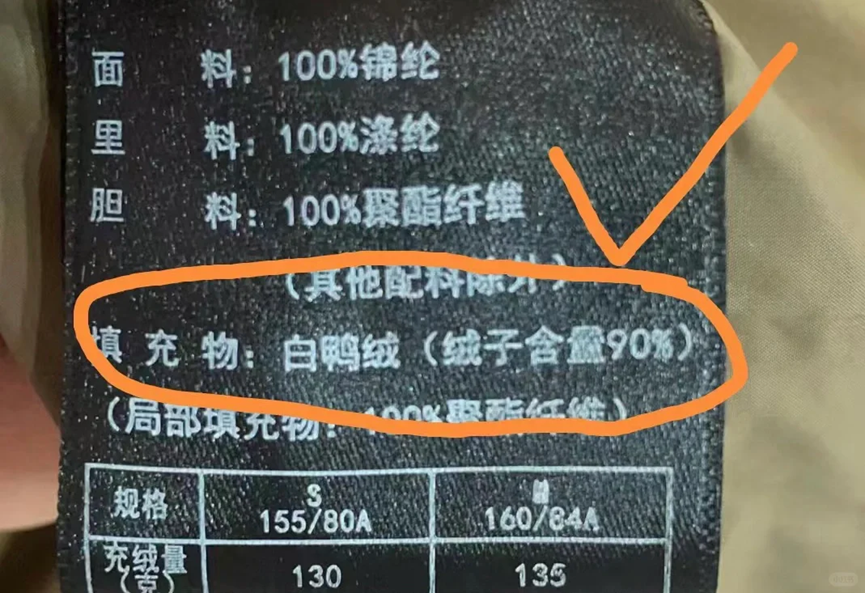 如果大家所购买的羽绒服水洗标上没有明确的标注出绒渍的含量,或者是绒子的含量低于50%的话,建议大家就不要选择了。