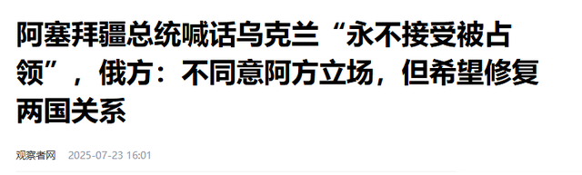观察者网:阿塞拜疆总统喊话乌克兰“永不接受被占领”,俄方:不同意阿方立场,但希望修复两国关系 2025-07-23
