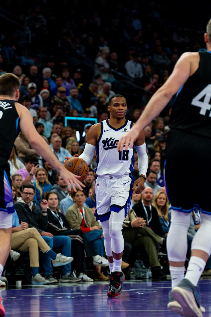 威少首发出战33分钟,投篮16中6,其中三分5中2,罚球3中2,得到16分12篮板14助攻4抢断的三双,正负值+11。这是威少本赛季第3次,以及个人生涯第206次三双,继续刷新历史纪录。威少本赛季一共首发出战14场比赛,场均可以得到15.6分8.4篮板7.3助攻1.4抢断,投篮命中率47.2%,三分命中率42.3%。