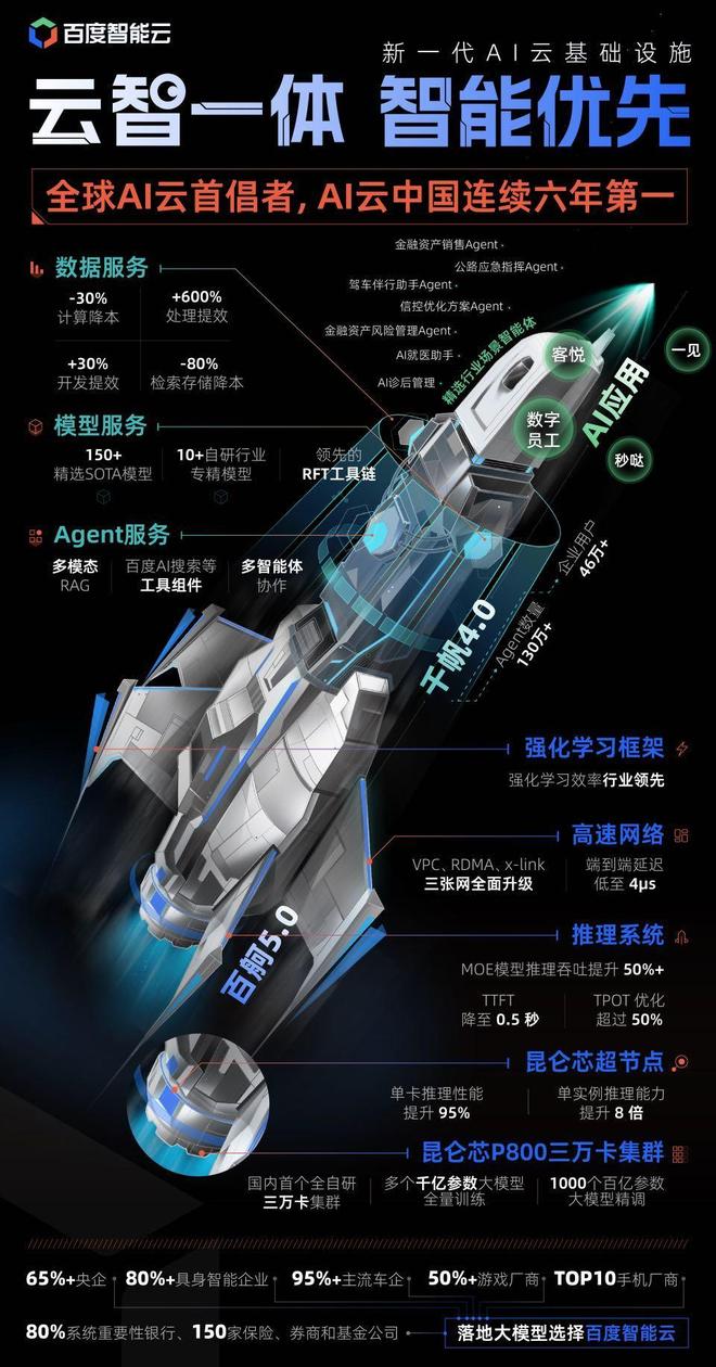 在全栈AI加持下,百度智能云已经支撑了一大批AI应用在产业场景中实现效果涌现。截至目前,超65%的央企、100%的系统重要性银行、95%的主流车企、50%以上的游戏厂商以及重点的具身智能企业,在落地大模型时都选择了百度智能云。