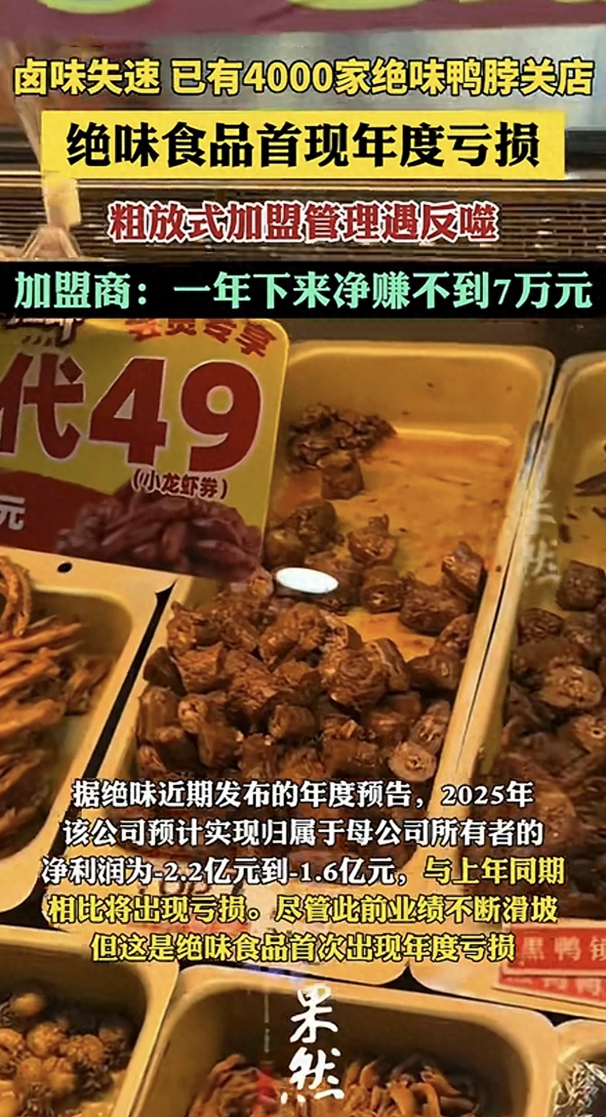 然而市场饱和后,同一品牌门店开始内卷。加盟商陷入“高成本”和“低客流”的双重挤压,利润空间持续萎缩。许多加盟商最终选择关闭门店,绝味的万店帝国由此崩塌。
