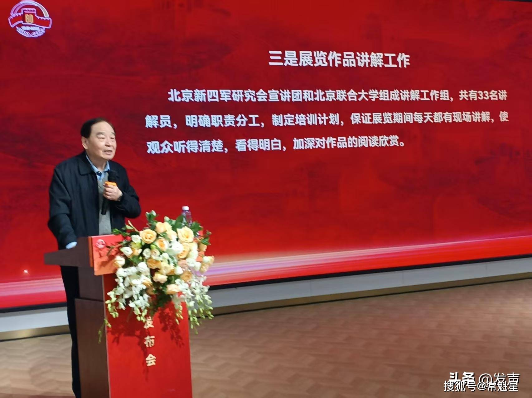 新四军后代乔泰阳将军介绍了美术展的目的意义、主要安排和配套活动;组委会副秘书长兼办公室主任马晓峰解读了美术展重点内容和艺术价值;新四军后代刘华苏将军讲述了新四军抗战历程和阐释铁军精神内涵与时代价值;北京新四军研究会会长、组委会主任张晓龙介绍了研究会 2025年纪念抗战胜利 80 周年组织的八项系列活动情况;