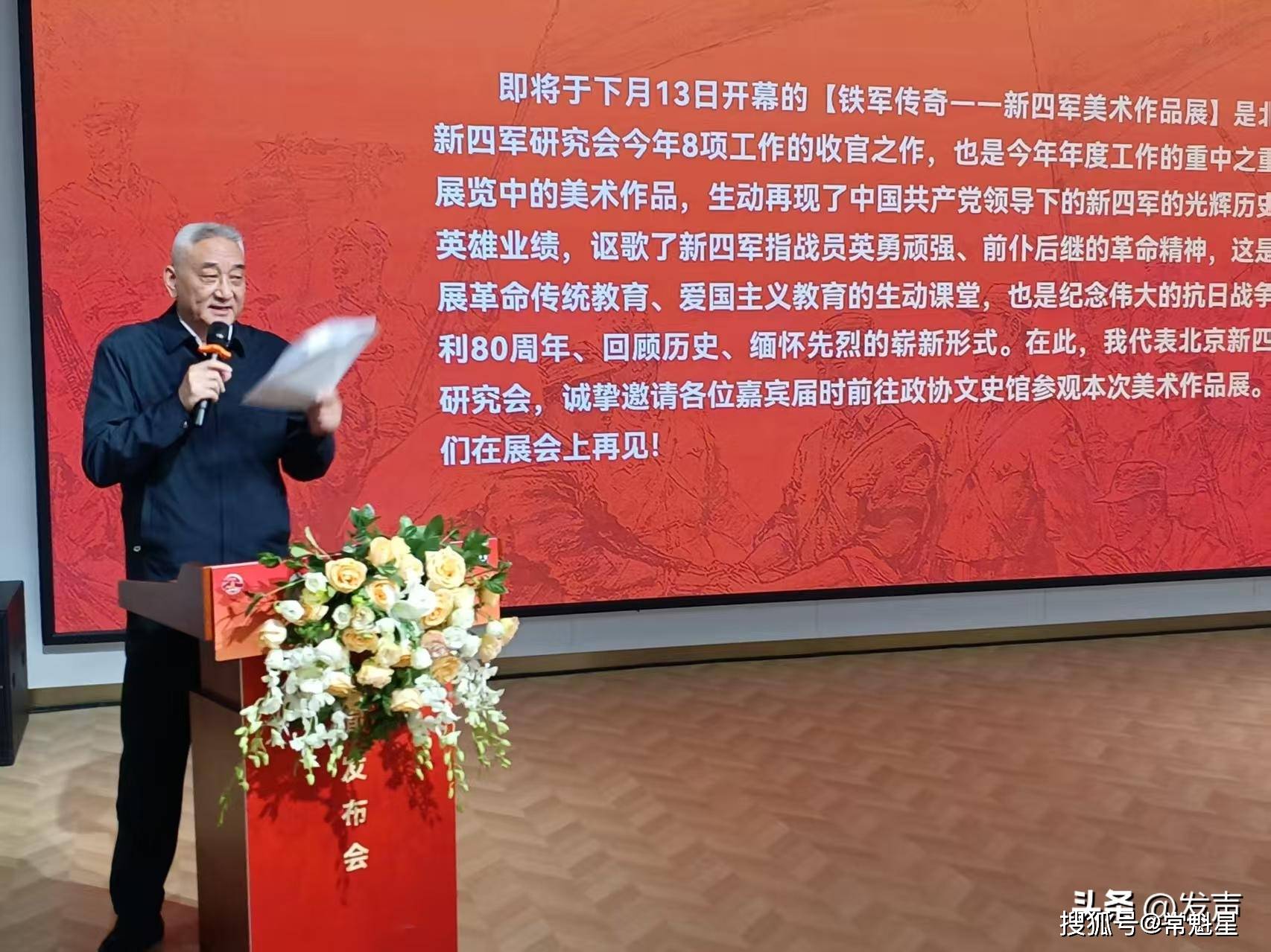 (江山丶常魁星、杨抗美、霍金梅)11 月 27 日,北京新四军研究会在北京新四军研究会红色文化教育基地召开了新闻发布会,北京新四军暨华中抗日根据地研究会主办的大型美术展《铁军传奇——新四军美术作品展》将于2025年12月13日至19日在北京中国政协文史馆举办,纪念中国人民抗日战争暨世界反法西斯战争胜利80周年。