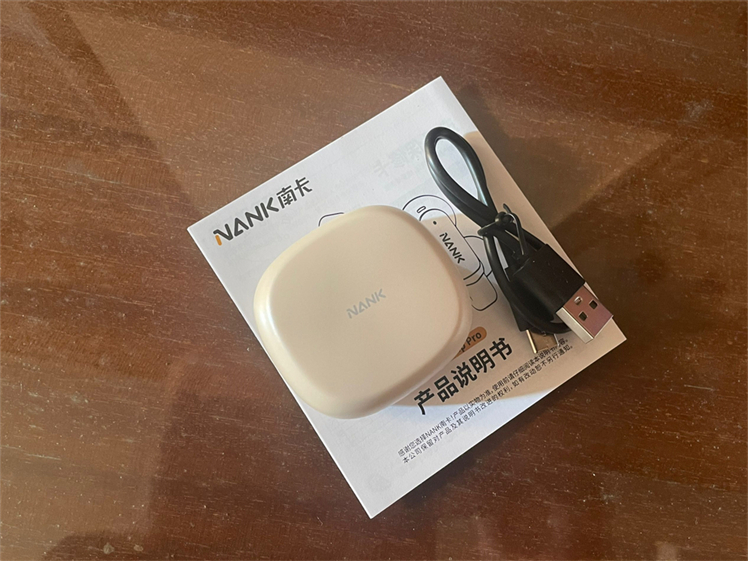 南卡Clip Pro耳夹式真无线蓝牙耳机包装比较简约,有卡其色和黑色两种可选,从包装的配色就可知道本人的是卡其色,打开包装可以看到内含耳机的充电仓和装在充电线的配件盒。耳机的配件并不多,包括说明书、充电线、充电仓。