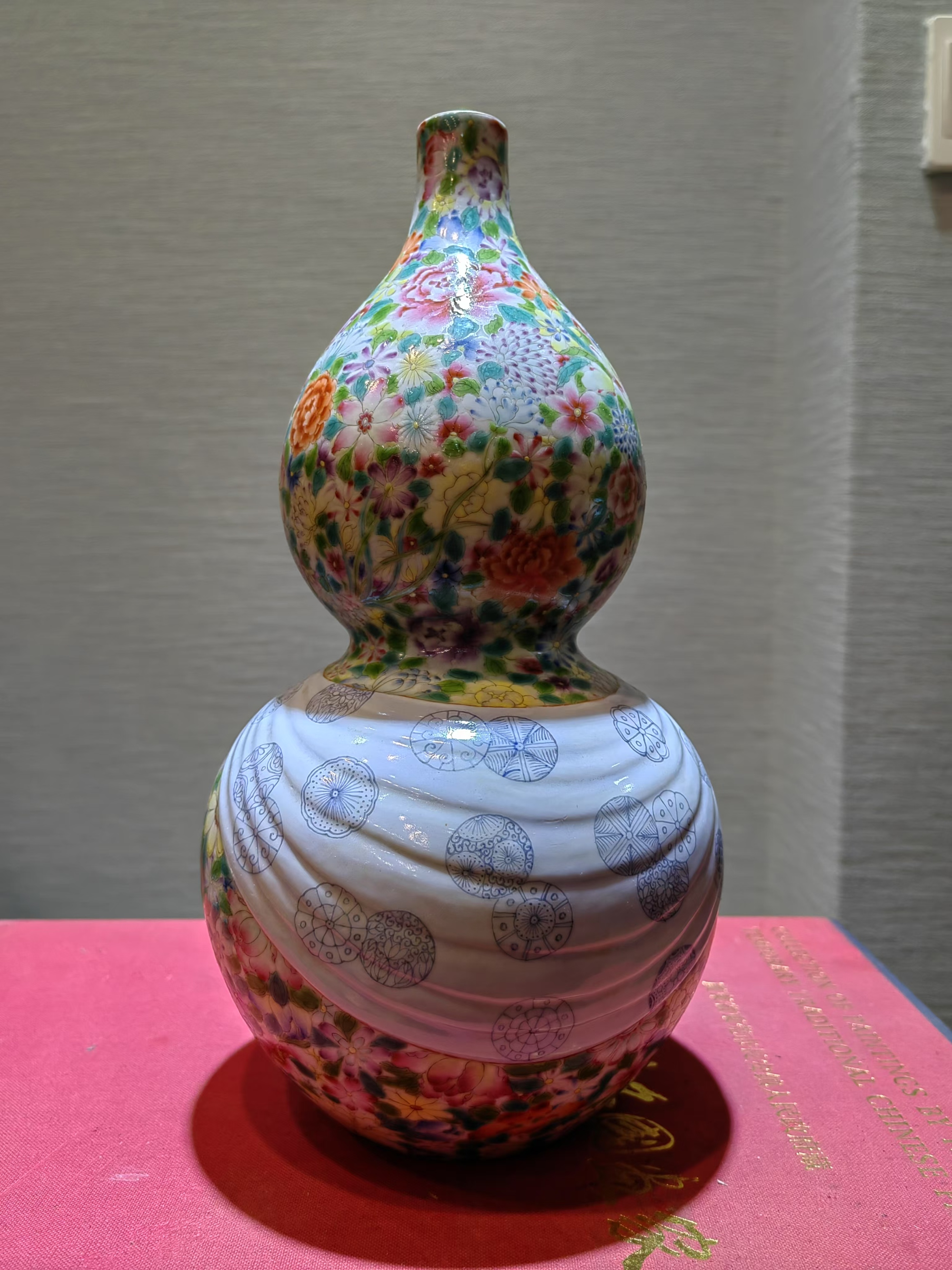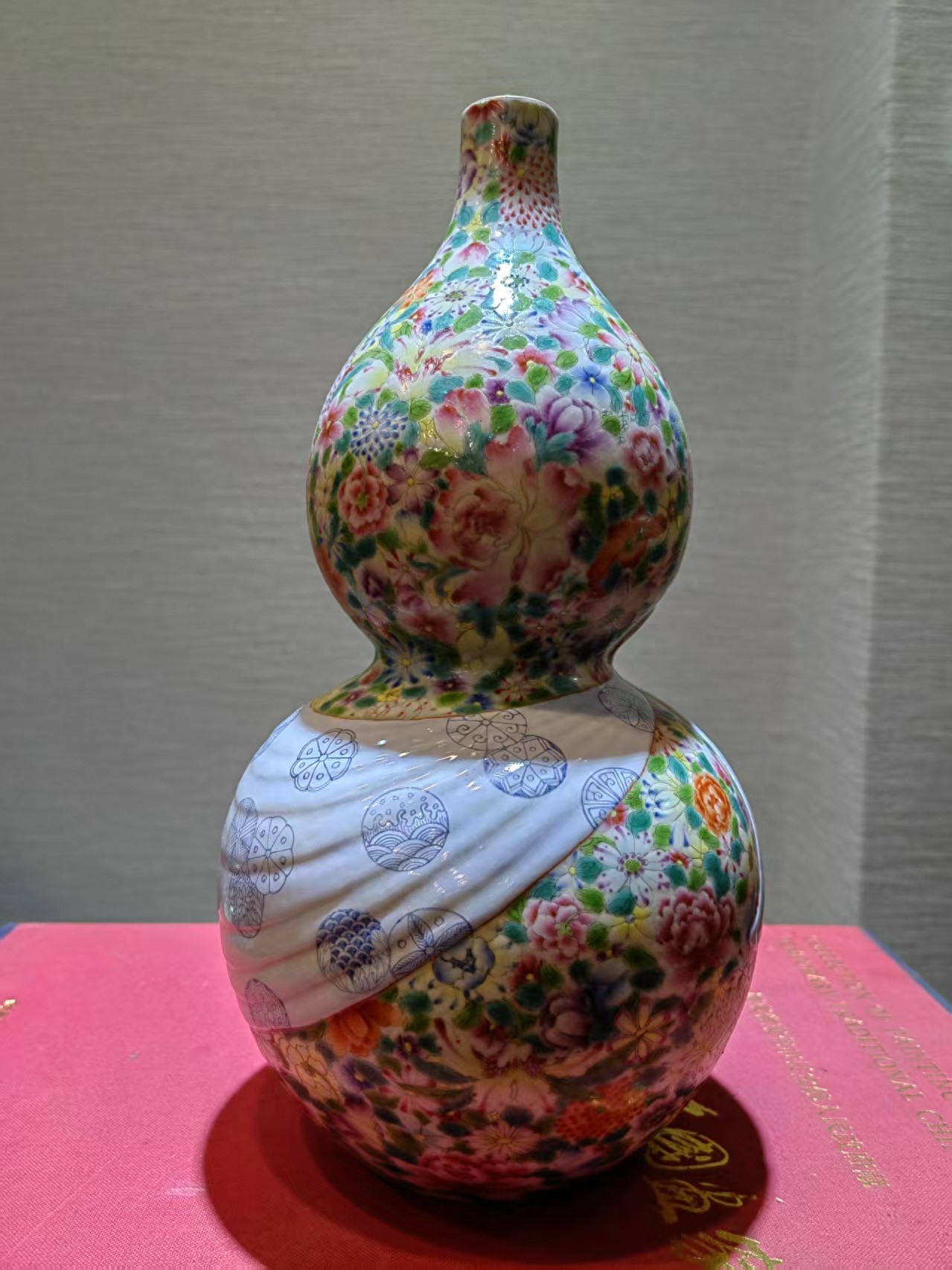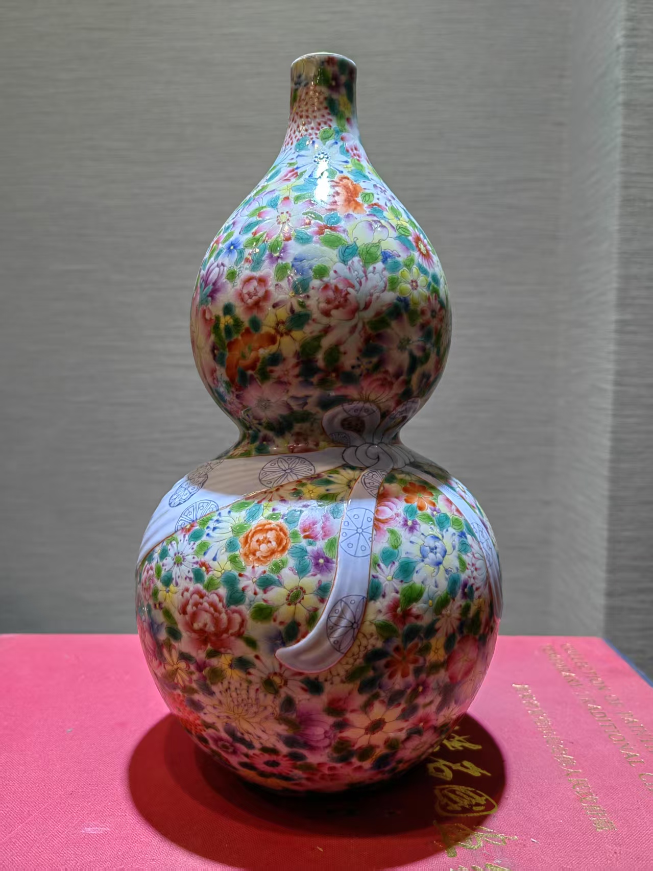 清乾隆时期(1736-1795年)的粉彩瓷器以其华丽的装饰和精湛的工艺著称,其中“粉彩万花不落地葫芦瓶”是这一时期的典型代表,展现了乾隆瓷器的极致奢华与艺术成就。