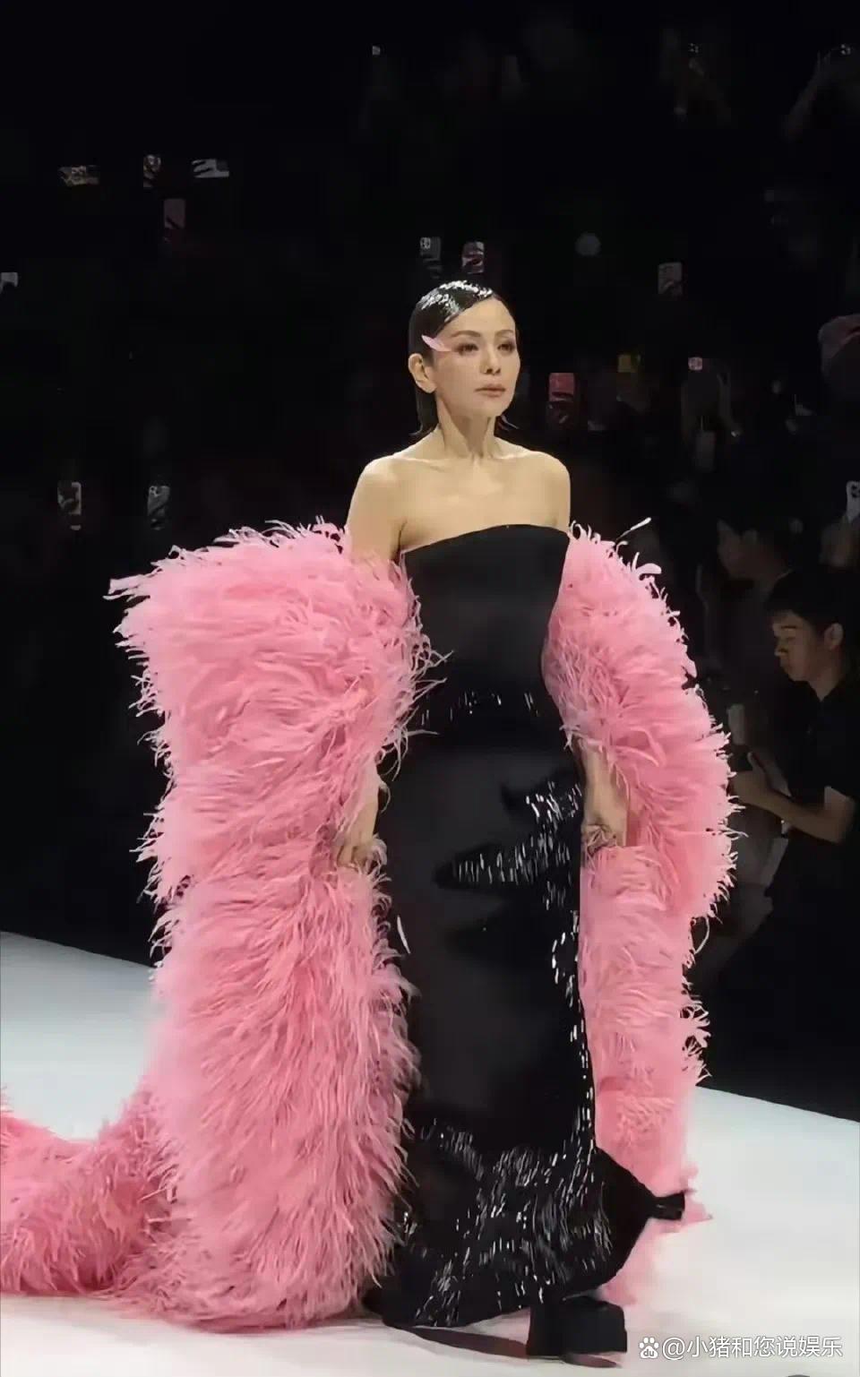 不仅如此,王琳在走秀过程中的表情管理也堪称完美。她时而微笑,时而凝视镜头,每一个眼神都仿佛在诉说着不同的故事。这种由内而外散发出的优雅气质,让她在T台上大放异彩。