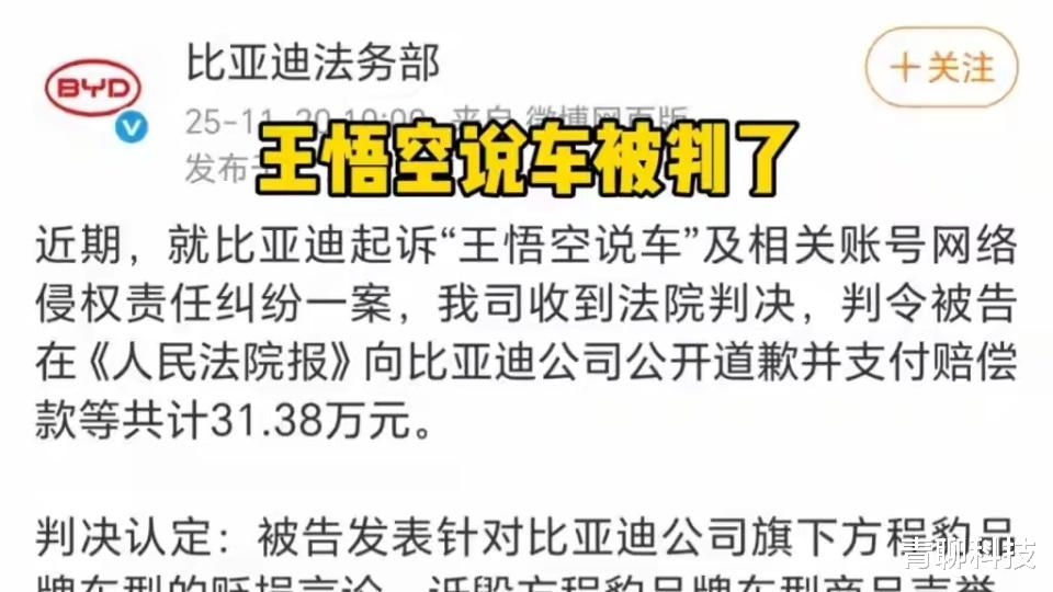 当“王悟空说车”因恶意诋毁方程豹车型被判公开道歉并赔偿31.38万元的判决落地,车圈一片叫好。这起胜诉案并非孤例,此前“龙猪-集车”长期抹黑比亚迪被判赔200余万元的案例,早已为行业敲响警钟。两起案件的公正裁决,不仅是比亚迪维护自身权益的胜利,更是对网络空间黑公关乱象的有力整治,为中国新能源汽车产业的健康发展注入了正能量。