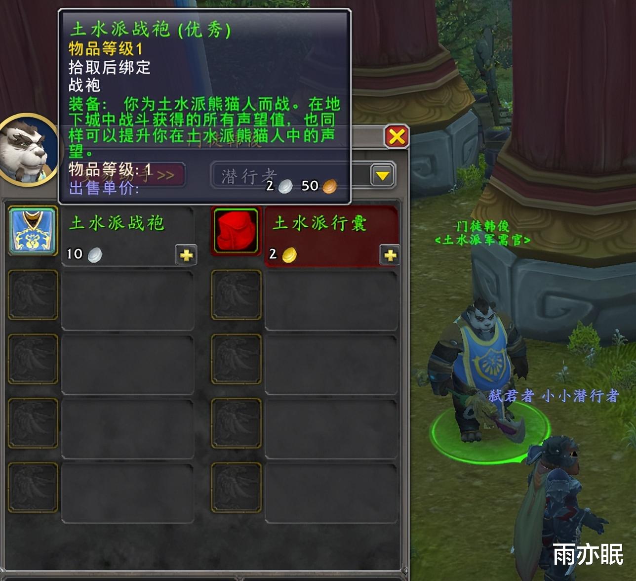 而除了熊猫人声望外,其他都可以用时空漫游徽章兑换奖章。我们在主城的同一个位置,可以找到对应的军需官,在他这里可以购买到战袍。