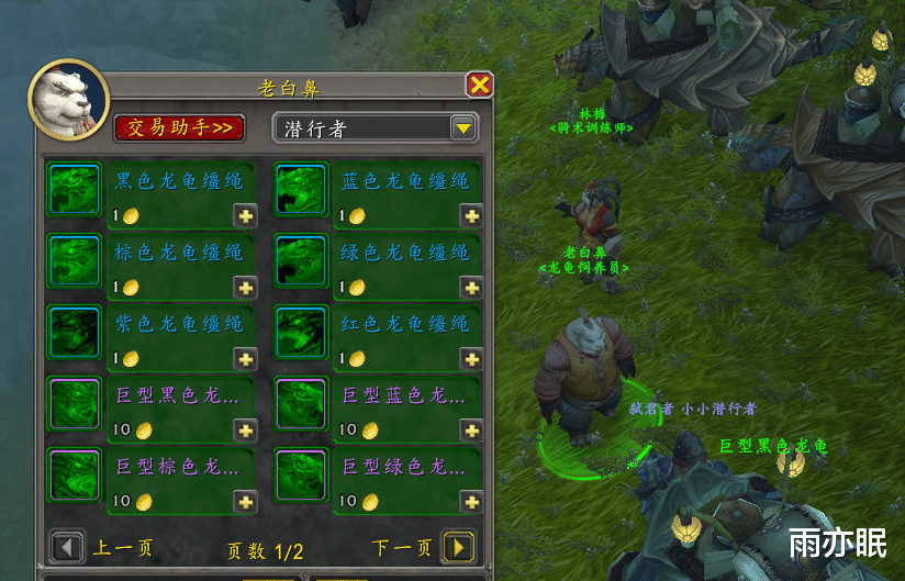 我们可以找到龙龟饲养员,对话之后可以看到可以直接购买12只龙龟,而试玩角色身上有10G,蓝色龙龟1G一只,绿色龙龟10G一只。