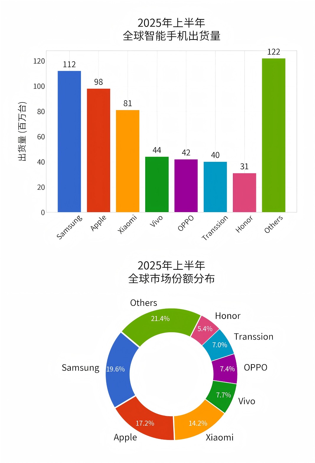 以下数据整合了IDC、Counterpoint、Canalys等知名分析机构的2025年一、二季度报告。