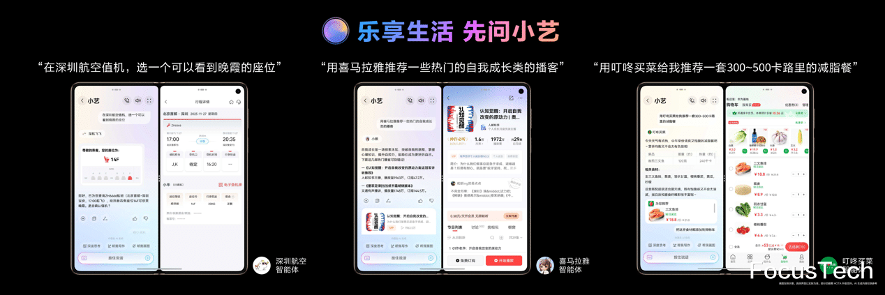 举例来说,如果你计划某一天飞上海,只需对小艺说一句"帮我订一张X月X日去上海的机票并值机选座",它就能自动完成从查询、比价、下单到办理的全流程。同理,当你需要购买某个物品、下载视频或制定某地的旅游攻略,也只需向小艺发出指令即可达到目的,整个过程省去了以往需要在多个应用间反复切换、手动操作的繁琐步骤,让复杂事务变得像对话一样简单自然。