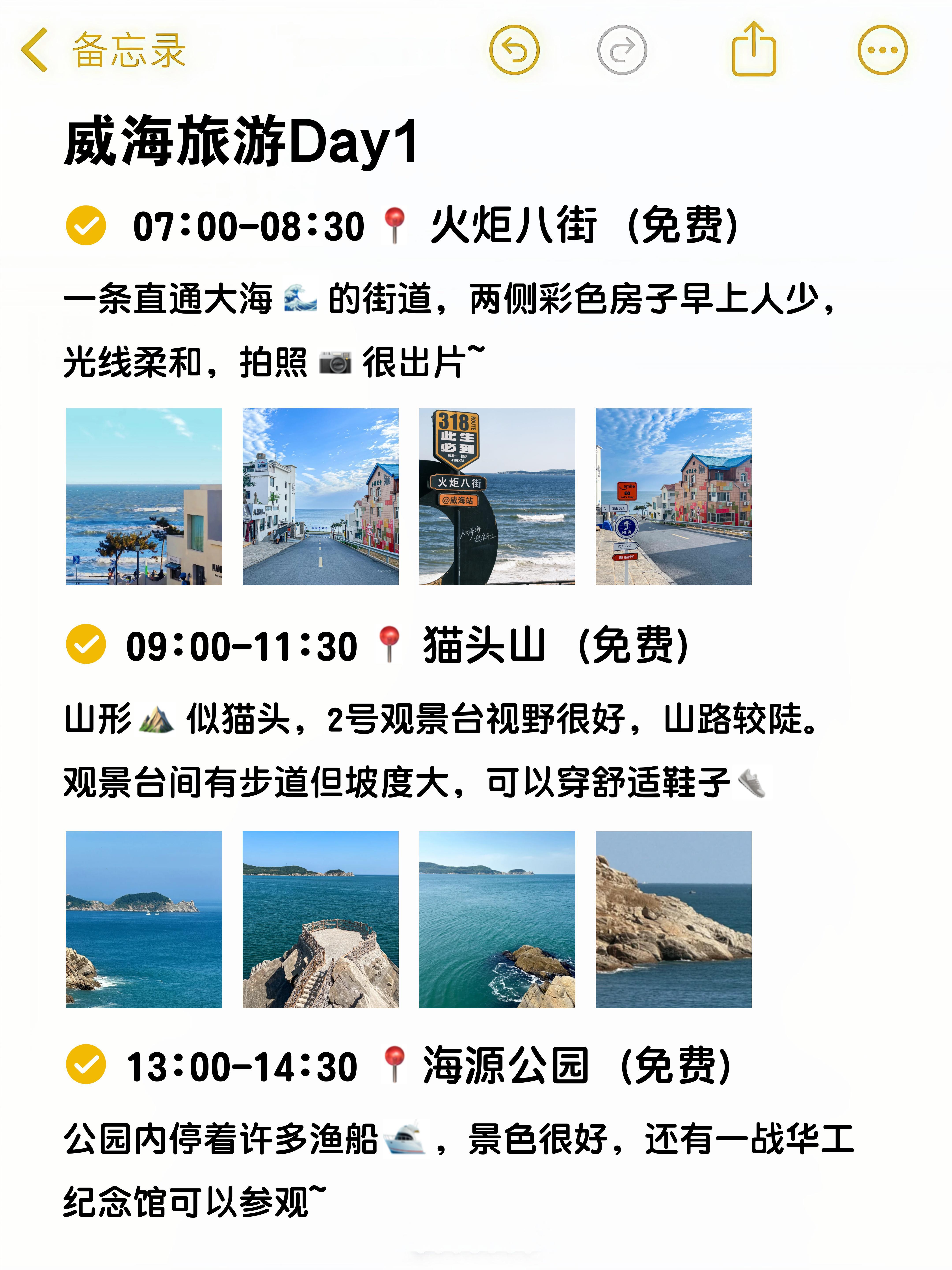 威海真的好吃又好玩🥰整理了一份攻略📄给大家!希望可以帮到要来威海旅游的宝子们👭🚗两日游路线📍Day1 火炬八街