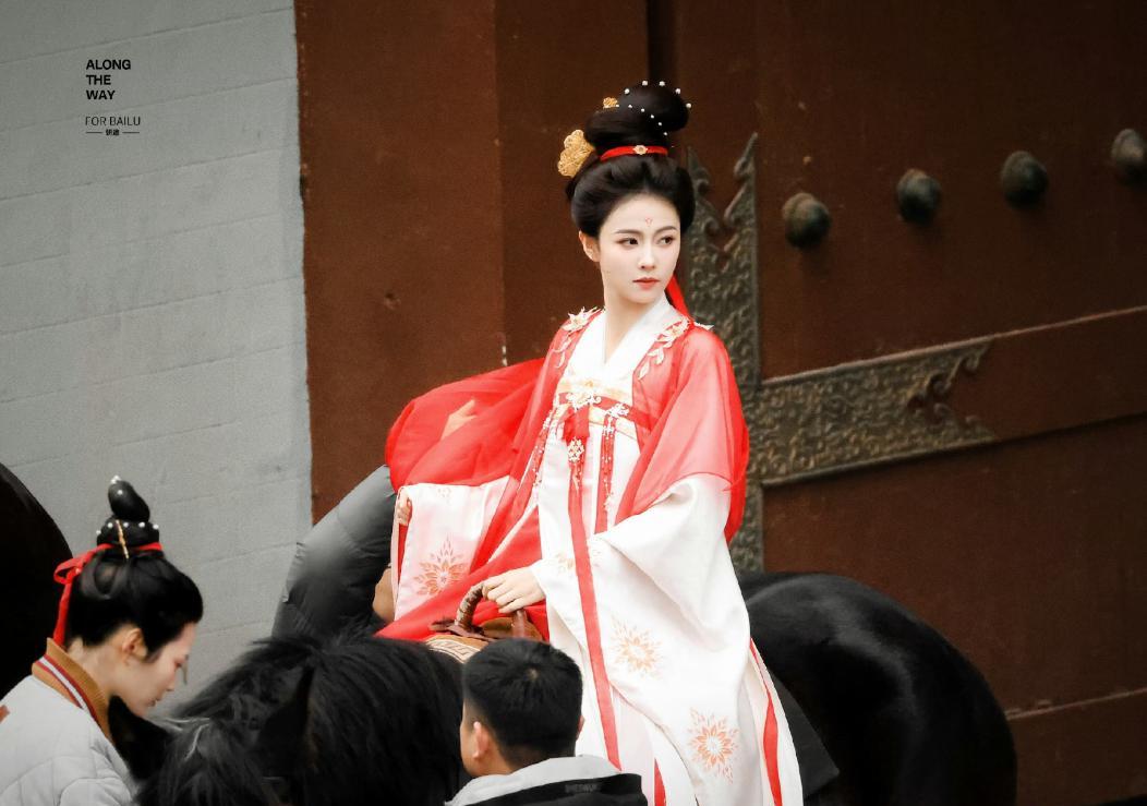 从目前曝光的剧照和路透图来看,白鹿在《青雾风鸣》中的造型令人惊艳。她一改往日或英气或温婉的形象,以明艳动人的唐宫仕女造型示人。一袭红衣,衬托出她白皙的肌肤和精致的五官,举手投足间流露出的自信与气场,让人眼前一亮。尤其是一张骑马的侧颜照,即使在高清生图的镜头下,白鹿的五官依然经得起考验,流畅的线条,挺拔的身姿,将李佩仪的飒爽英姿展现得淋漓尽致。