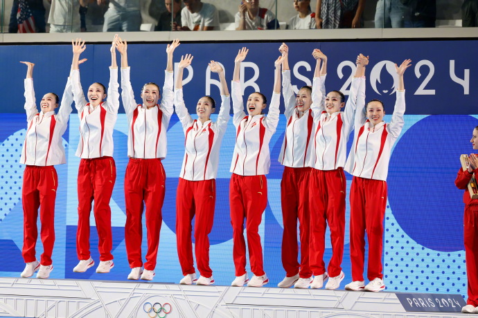 2024年8月8日凌晨,巴黎奥运会花样游泳集体项目的最后一项比赛集体技巧自选在巴黎奥林匹克水上运动中心举行,中国队以总成绩996.1389分获得花样游泳集体项目金牌