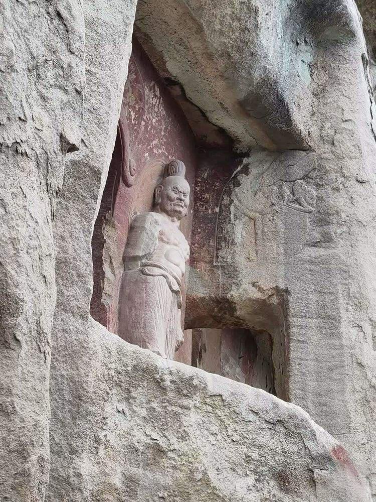 “爬上龙山时汗湿后背,转过山坳却被眼前的石窟惊住——悬崖上的道教神仙,衣袂飘举如乘云,刀法利落似斧劈,比想象中更震撼。”