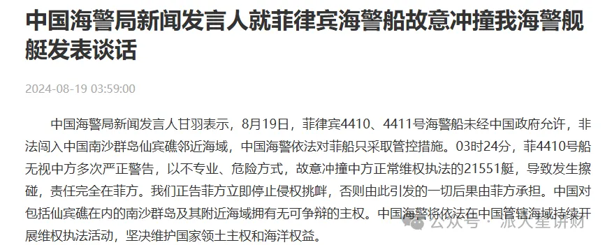 今日,中国海警今日连发三条推送,句句直指菲律宾当局。