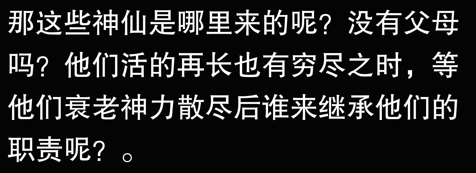 特权永远是极少数,如果神仙🈶后代,肯定也得当神仙,问题是他们永生,如果繁衍下一辈越来越多,天界体系就会崩坏,这也是中国古代一种平衡吧