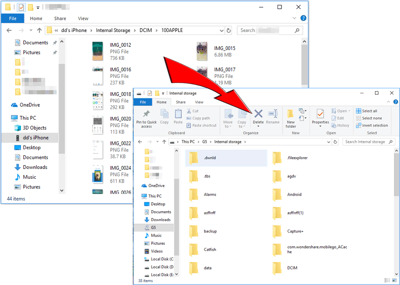 方法 2:如何仅通过 USB 将数据从 iPhone 转移到小米如果你想采用更传统的方式将数据从 iPhone 转移到小米,可以考虑手动传输。只需使用 USB 数据线连接两部设备,并将媒体文件从电脑拖放到目标设备即可。这种方法安全可靠,不会导致数据丢失,但它仅限于照片和视频等文件。操作步骤如下: