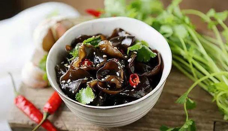 材料:木耳、红椒、香菜、熟白芝麻、陈醋、香油、糖适量、生抽