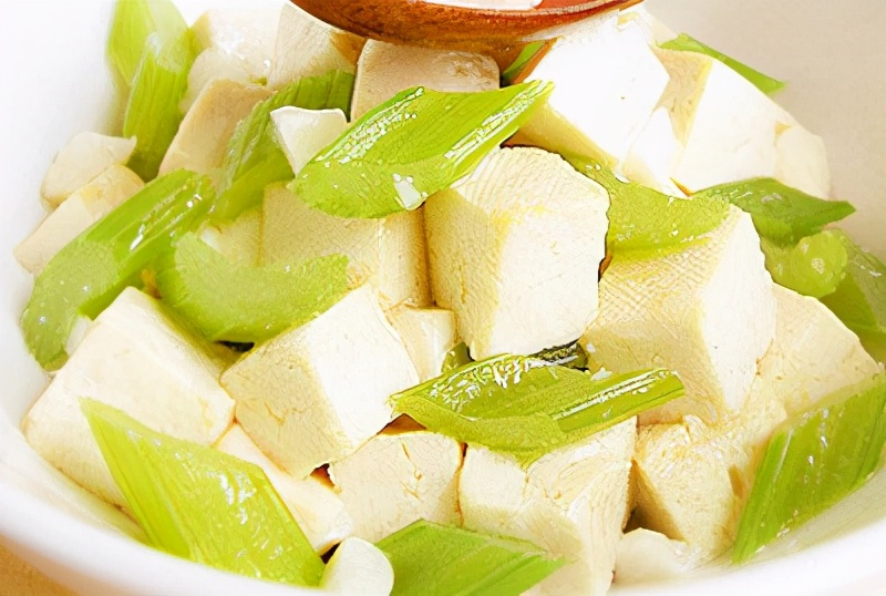 食材:北豆腐、芹菜、食盐、蒜、香油、水淀粉、高汤