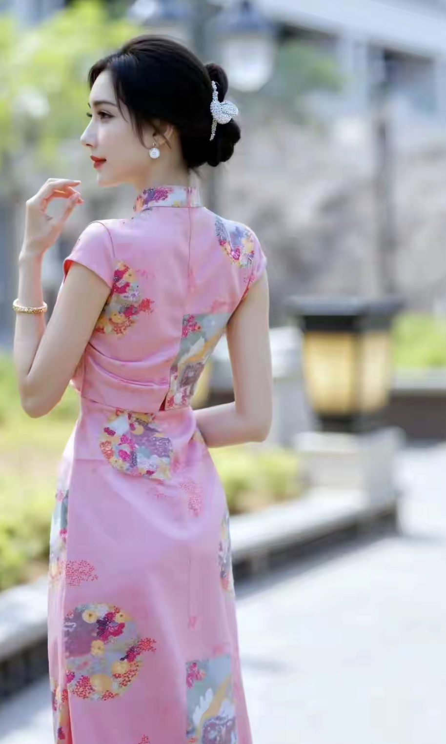 从色彩到剪裁,从图案到搭配,这件粉调改良旗袍都把春日的浪漫与东方美学融合得恰到好处,让穿着者既能感受传统服饰的韵味,又能拥抱现代时尚的活力,堪称春日穿搭的“氛围感王者”。