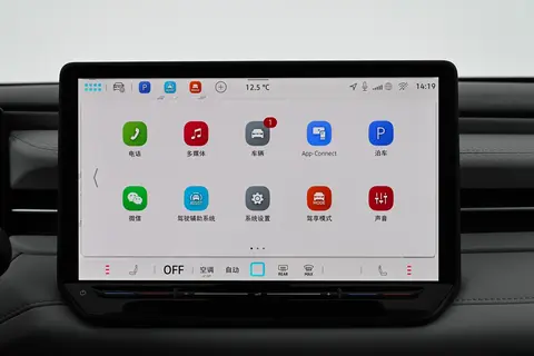 具体再来看内饰配置,朗逸 Pro 这次在内饰上做了大升级,环抱式座舱使用了软材料和铝合金饰板搭配。换挡方式使用了旋钮式的,顶配车型还能选配40W的手机无线充电。朗逸 Pro全系标配10.25 英寸全液晶仪表盘,搭配 12.9英寸中控屏,支持双音区语音控制,多媒体、导航、空调、车窗,甚至座椅加热都可以通过语音来控制。而且车机还支持CarPlay和HUAWEI HiCar,苹果用户和华为用户用起来都方便。